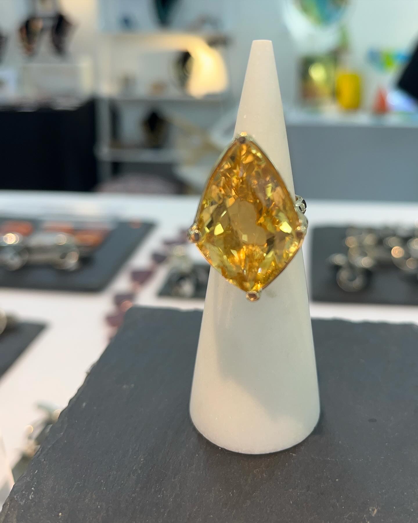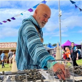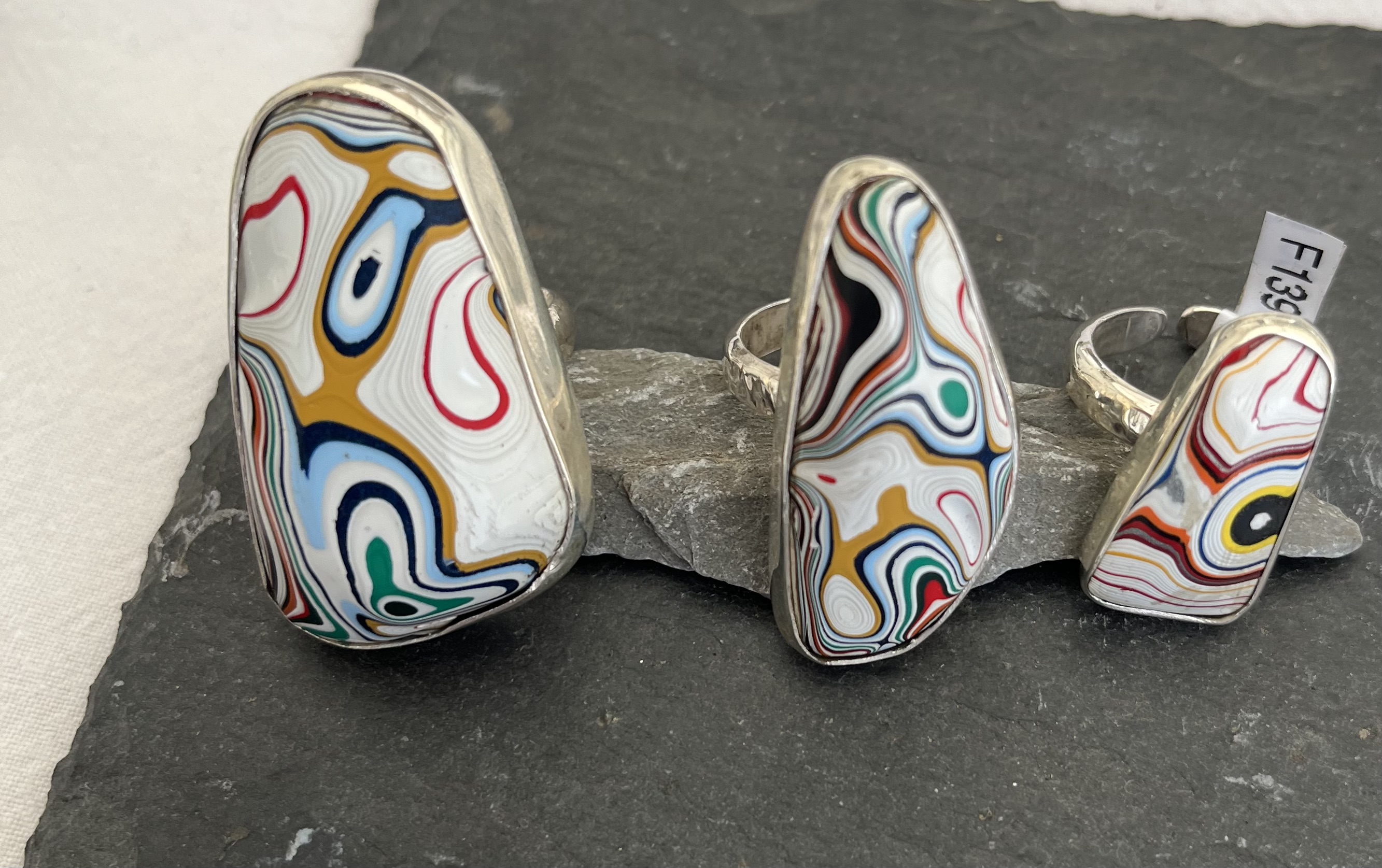 Andy is a local silversmith specialising in statement rings, using semi-precious stones, glass and recycled materials such as Fordite and Surfite. He loves working in silver, and he had tried to capture the magic of molten silver in some of his pieces. He is particularly moved by the colours in the semi precious stones, and loves how the silver enhances the stones.