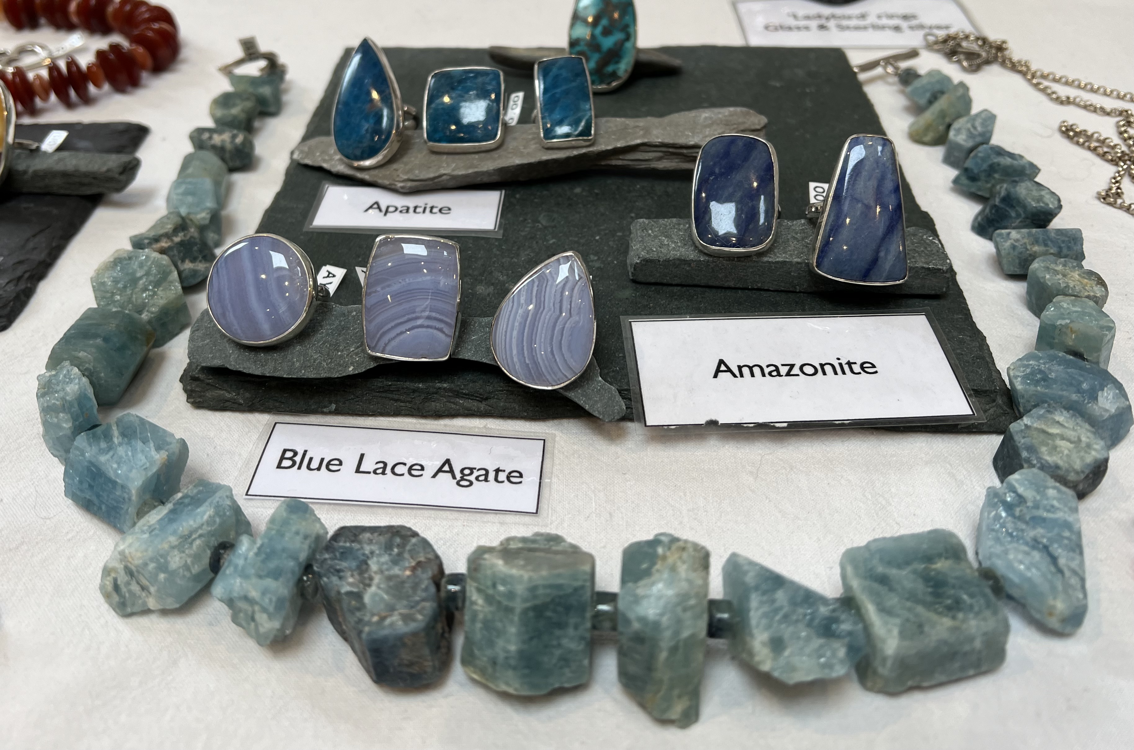 Andy is a local silversmith specialising in statement rings, using semi-precious stones, glass and recycled materials such as Fordite and Surfite. He loves working in silver, and he had tried to capture the magic of molten silver in some of his pieces. He is particularly moved by the colours in the semi precious stones, and loves how the silver enhances the stones.