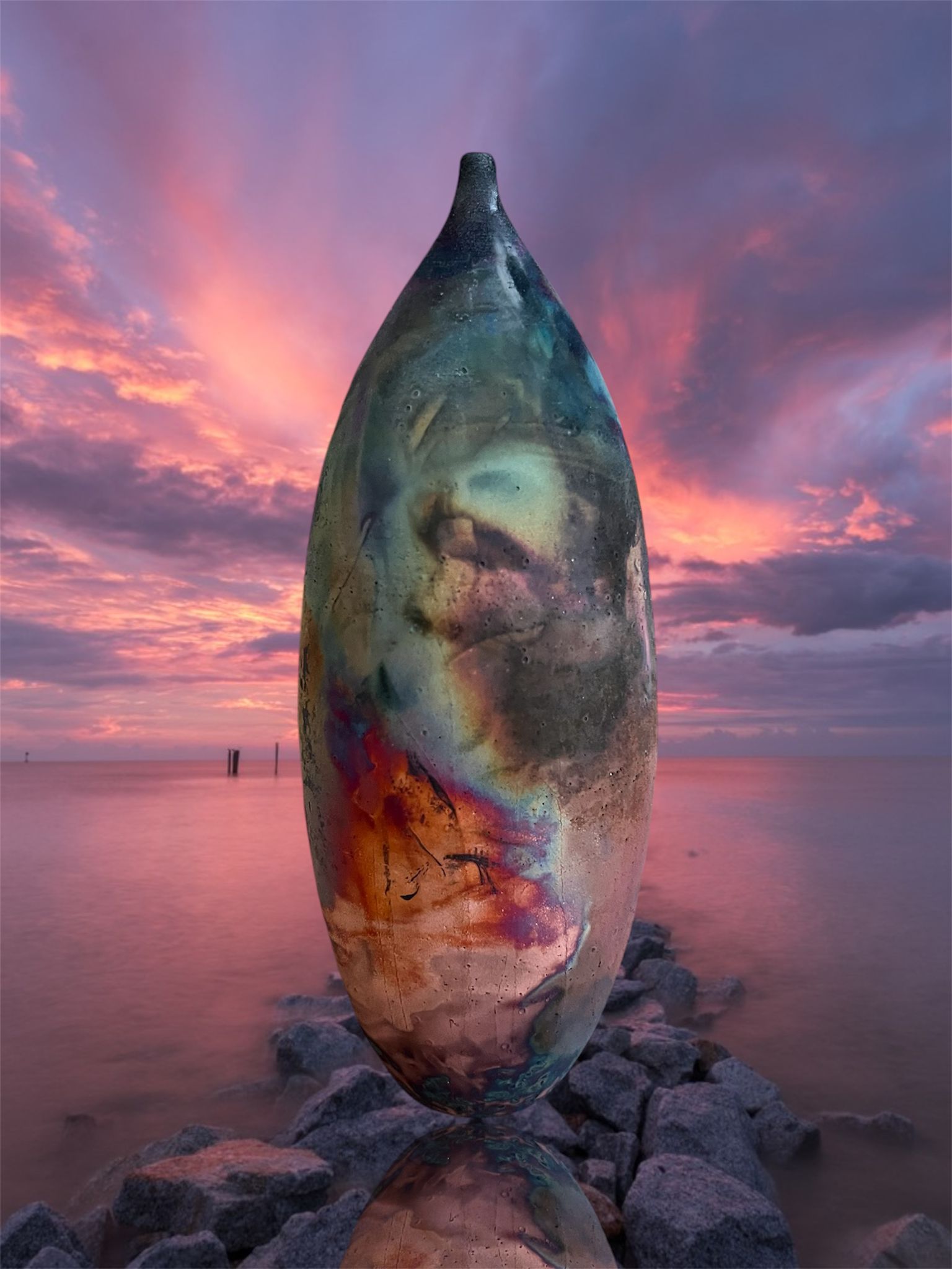 Wes Groves has been developing Raku ceramic creations for several years; these range from thrown pots, birds, fish, ammonites and recreating glass items from the ‘60s. He uses different Raku techniques like Copper Fuming, Obvara and Naked Raku to enhance the look of the objects.